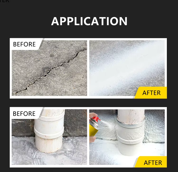 7. Si consiglia di coprire le fessure e di estendere la larghezza di spruzzatura di circa 15-30 cm, in modo da coprire facilmente i punti di infiltrazione d'acqua invisibili. punto di infiltrazione. Si raccomanda di coprire le aree non trattate con giornale o pellicola;